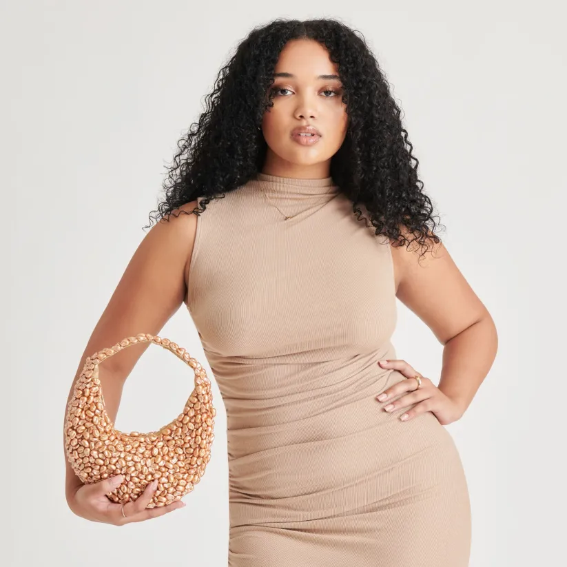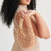 Say hello to PEARLA. This beautifully beaded bag blends function and sophistication. Her classic baguette silhouette makes for easy carrying, and her golden bead adornment elevates any look. Synthetic Pearls Beaded on Textile with Textile Trim 4.5″ Height, 8″ Width, 2″ Depth Zipper Closure 1 Interior Slip Pocket 8″ Handle Drop Imported Ships in recycled packaging, including a recycled dust bag, tissue paper, polybags, and hangtags.