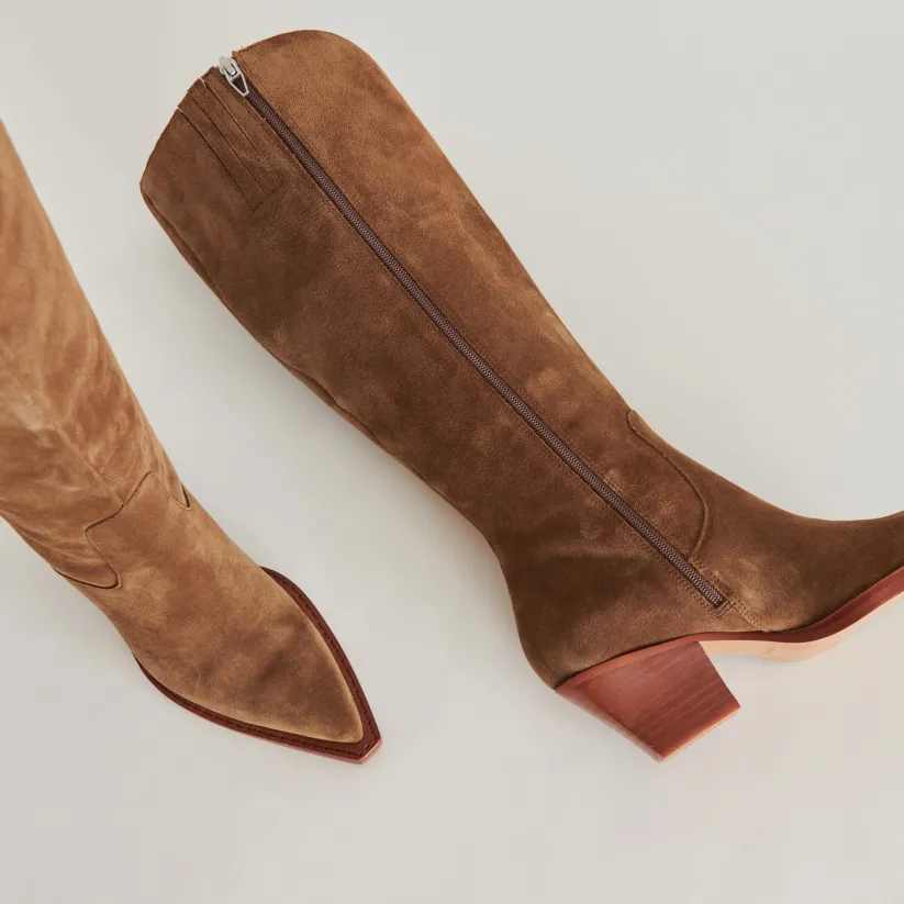 SKU: N/A Categories: Boots & Booties, More Sizes, Shoes, Shop, Tall Boots, Trending, Western Inspired, Wide Calf Tags: BROWNSUEDE, DOLCE VITA