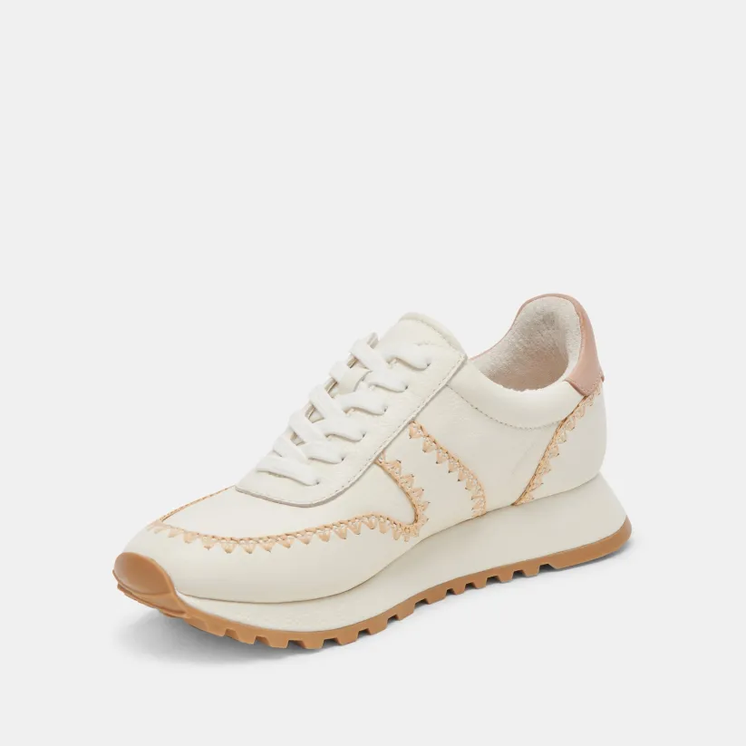 A classic sneaker silhouette with two personalities. Lace up AYITA in white leather for the timeless aesthetic or go bold and breezy in raffia. Leather + Synthetic Raffia Upper Rubber Outsole Textile Lining Syntehtic Sock 1.3″ Heel Height Imported