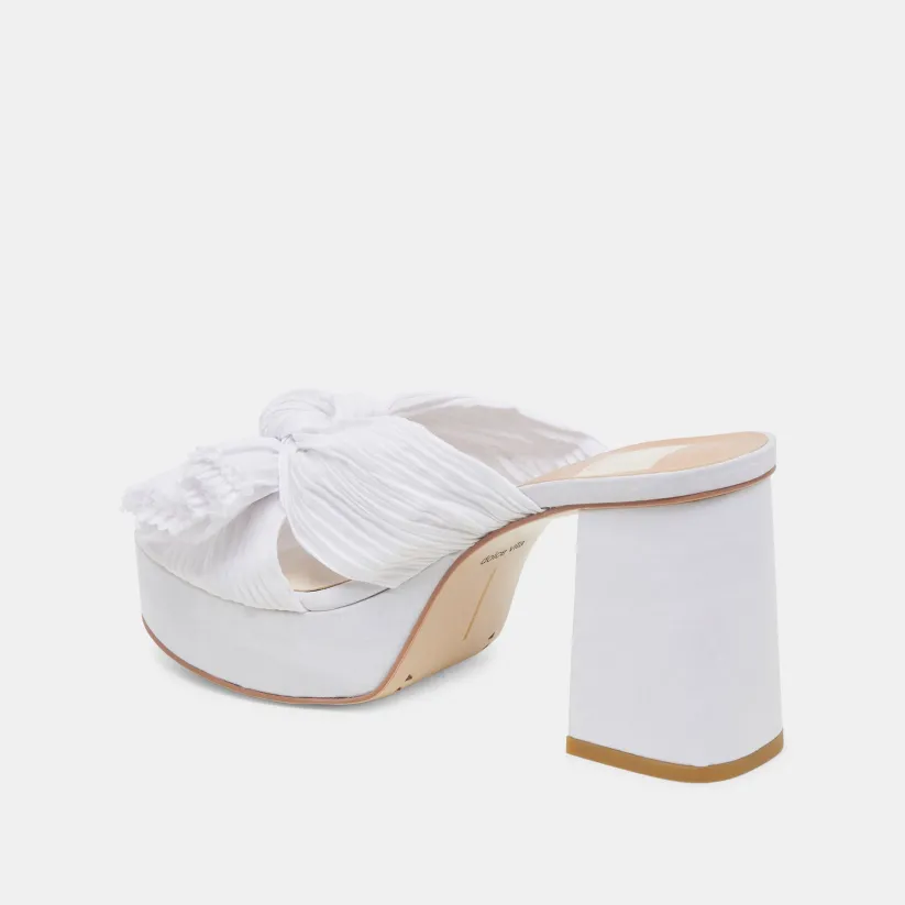 Chunky dimensions finished off with ultra feminine details. BLARE’s platform silhouette is covered top-to-bottom in luxe, pleated fabric and topped with a statement bow. She’s perfect for a fun bridal look or any dressy occasion. Textile Upper Leather Outsole Synthetic Sock 3.5″ Heel Height 1.2″ Platform Height Imported