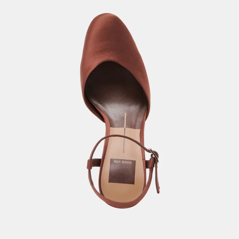 CLAUD HEELS CHOCOLATE SATIN