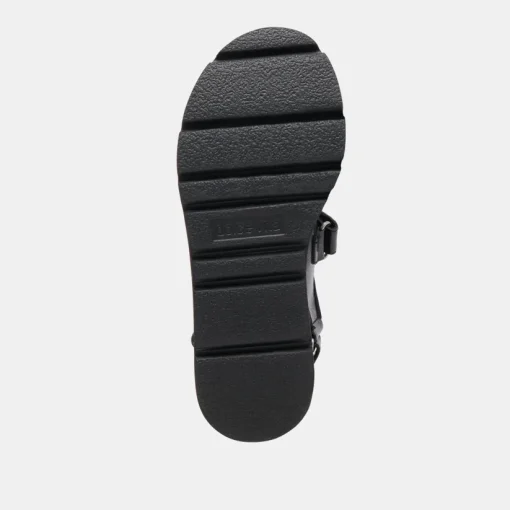 Utilitarian inspired with an emphasis on edge. DUBAI is comfort forward with a chunky platform sole, contoured footbed, and velcro straps. Choose from midnight crinkle patent or statement silver. Leather Upper EVA Outsole Water-based Leather Alternative Lining + Sock 2″ Platform Height Imported
