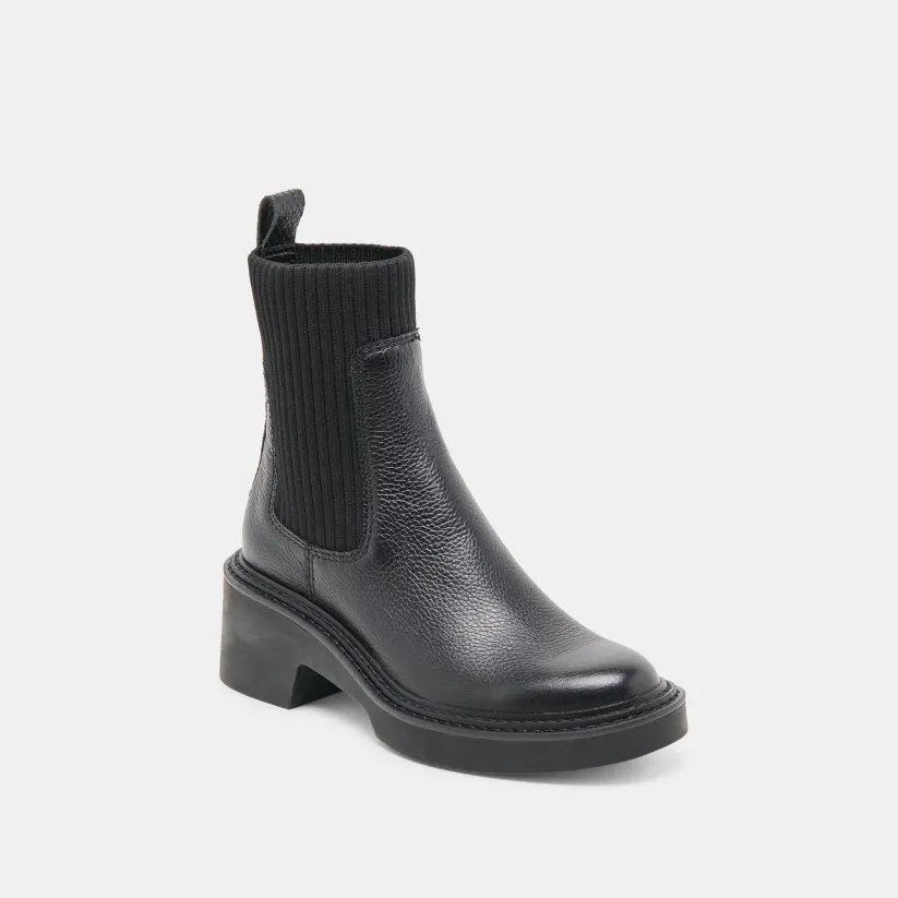 HILORA H2O is ready to take on the rain and then some. This waterproof boot is all lug with an extra chunky sole topped with a cozy knit shaft. Leather + Knit Upper EVA Outsole Recycled Microsuede Lining Water-based Leather Alternative Sock 6.8″ Shaft Height 9.5″ Leg Circumference 2.3″ Heel Height 0.6″ Platform Height Imported