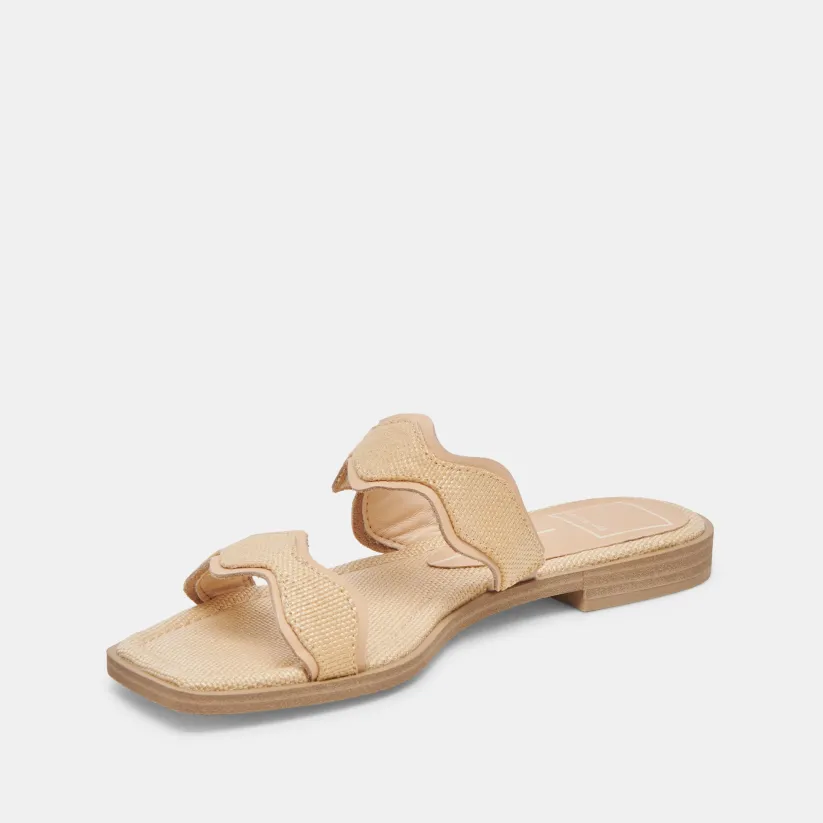 ILVA LOW has all the eye-catching details while keeping it comfy. Scalloped straps add a dressier touch, while a bevy of on-trend textures and colorways make her a statement sandal. Raffia + Leather Upper Recycled Synthetic Outsole Water-based Leather Alternative Lining + Sock 0.8” Heel Height Imported