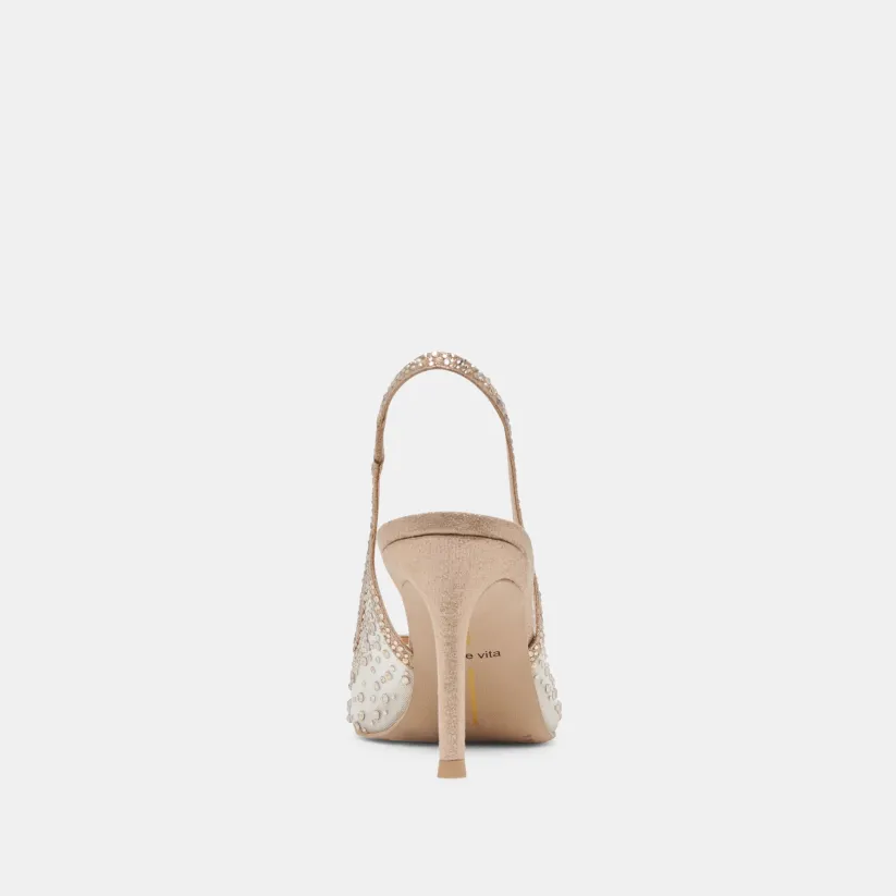 KAYE CRYSTAL HEELS GOLD MESH