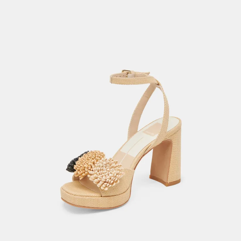 OLIVEA HEELS BLACK NATURAL RAFFIA