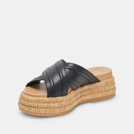 Slip WESLEE on all spring and summer long. Thick leather criss-cross straps meet a platform raffia sole for a cool and easy-breezy look. Leather Upper Rubber Outsole Synthetic Sock + Lining 1.5″ Platform Height Imported